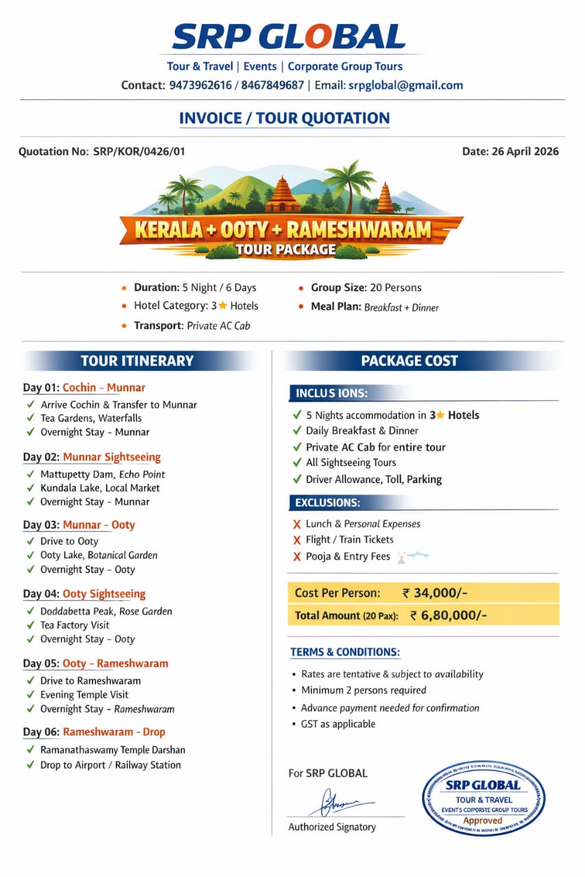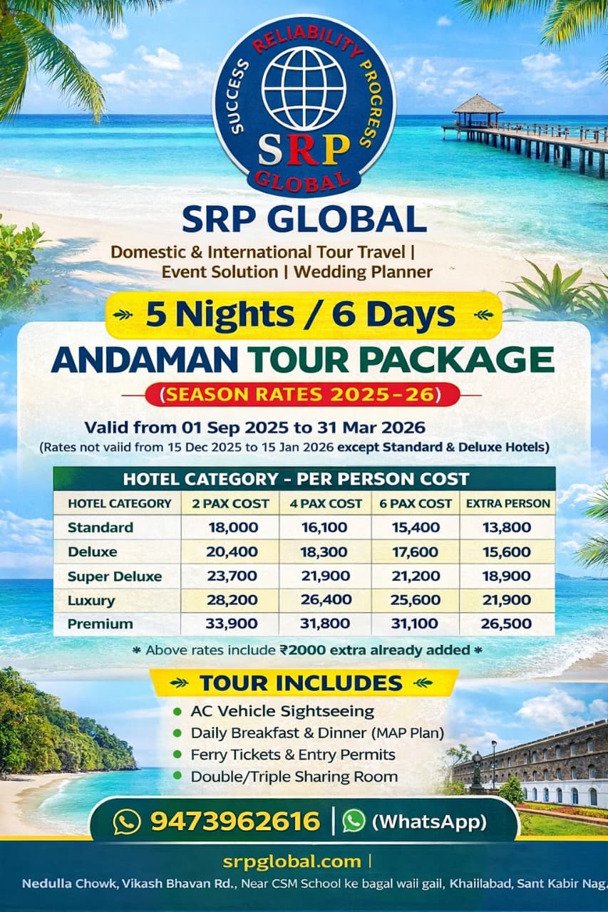 - Family, honeymoon, student tour, senior citizen tour etc.